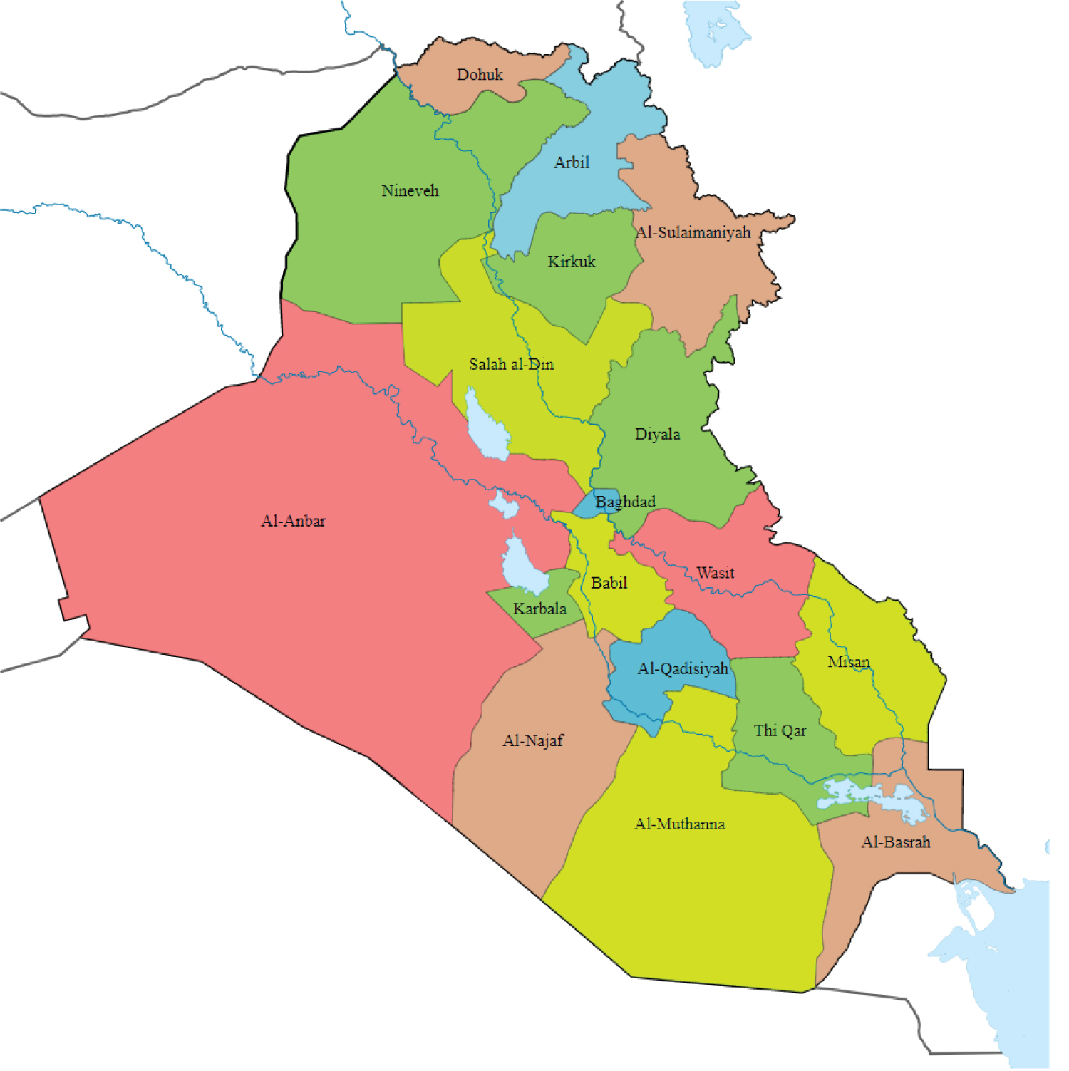 Figure 1: Map for Iraqi provinces.