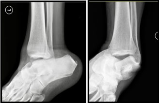 Figure 2: Antero-posterior and lateral radiographs of total lateral talar dislocation.