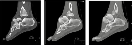 Post-operative CT scans showed good reduction and alignment of the talus and medial malleolar fracture (Figure 8). Patient was followed up in clinic a week after discharge. Sutures were removed and wound healing was satisfactory. The cast was removed and patient was mobilised in air cast boot and crutches and he flew back to the USA after 2 weeks.