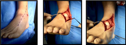 Figure 6: Soft tissue interposition (extensor digitorum brevis) blocking reduction.