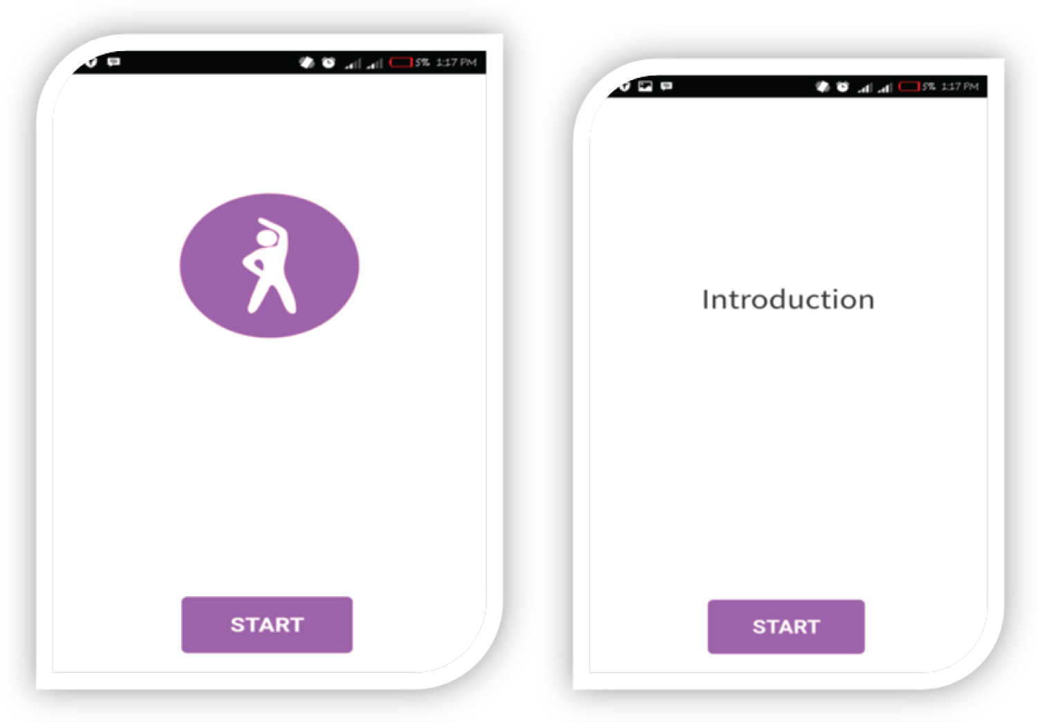 Step 12- User testing. As the closing stage of the app development, the prototype (dummy) was transitioned to a fully functional app with customized user interface elements. Figure 1, Figure 2, Figure 3, Figure 4, Figure 5, Figure 6 and Figure 7 shows some of the images of the low-back pain self-care mobile-phone application.