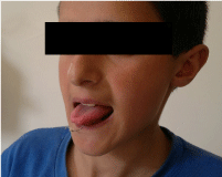 A 8-years-old male was injured with fishhook from his tounge during fishing. Fishhook embedded in his tounge during he was throwing fishing line. There was slight introral bleeding but there were no any respiratory distress and neurologic findings. The patient was evaluated by a practioner in emergency room and referred to the otorhinolaryngology service. He had good medical history without admission to the hospital for any reason. His tetanus vaccination was checked and found to be effective.