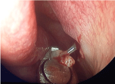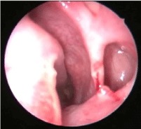 Figure 4: Well ventilated and healthy maxillary sinus seen through the antrostomy, 4 months postoperatively. View Figure 4