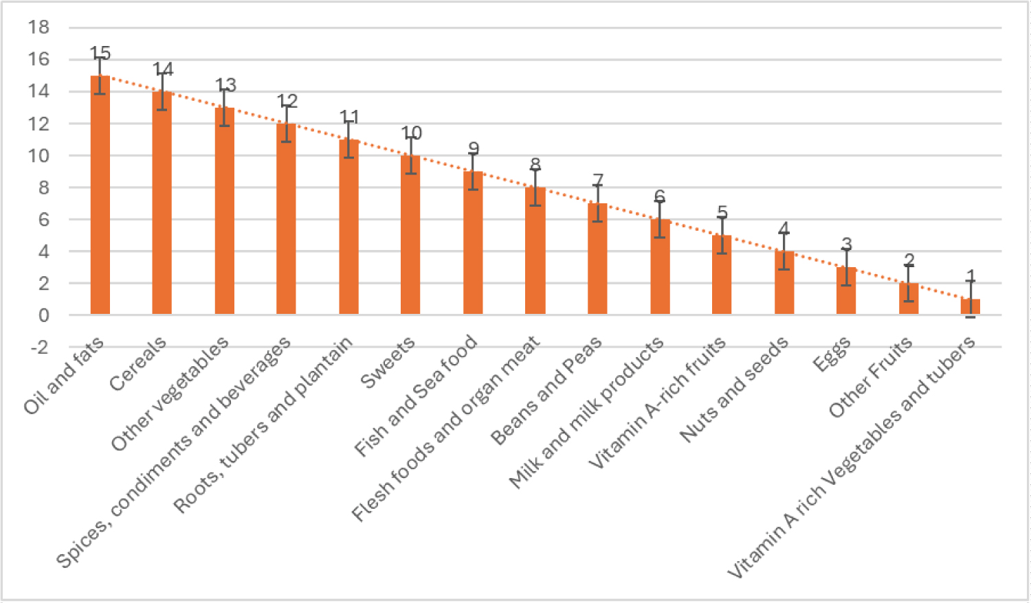 Figure 2: Dietary diversity ranking from most to least consumed food groups.