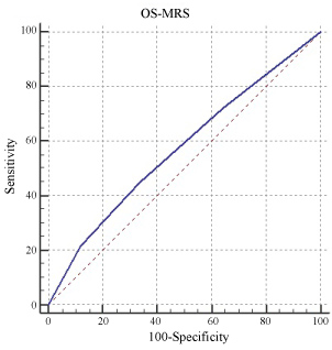 Values remaining under the curve may be used to interpret OS-MRS points (p < 0.05) (Table 3). The cut-off value for OS-MRS points according to complications was calculated as 1. OS-MRS points above 1 may be associated with complications. The variable OS-MRS points may be used as a parameter for complication cut-off (Figure 1). However, as the under the (ROC curve) AUC was close to 0.5, it is necessary to question the reliability.