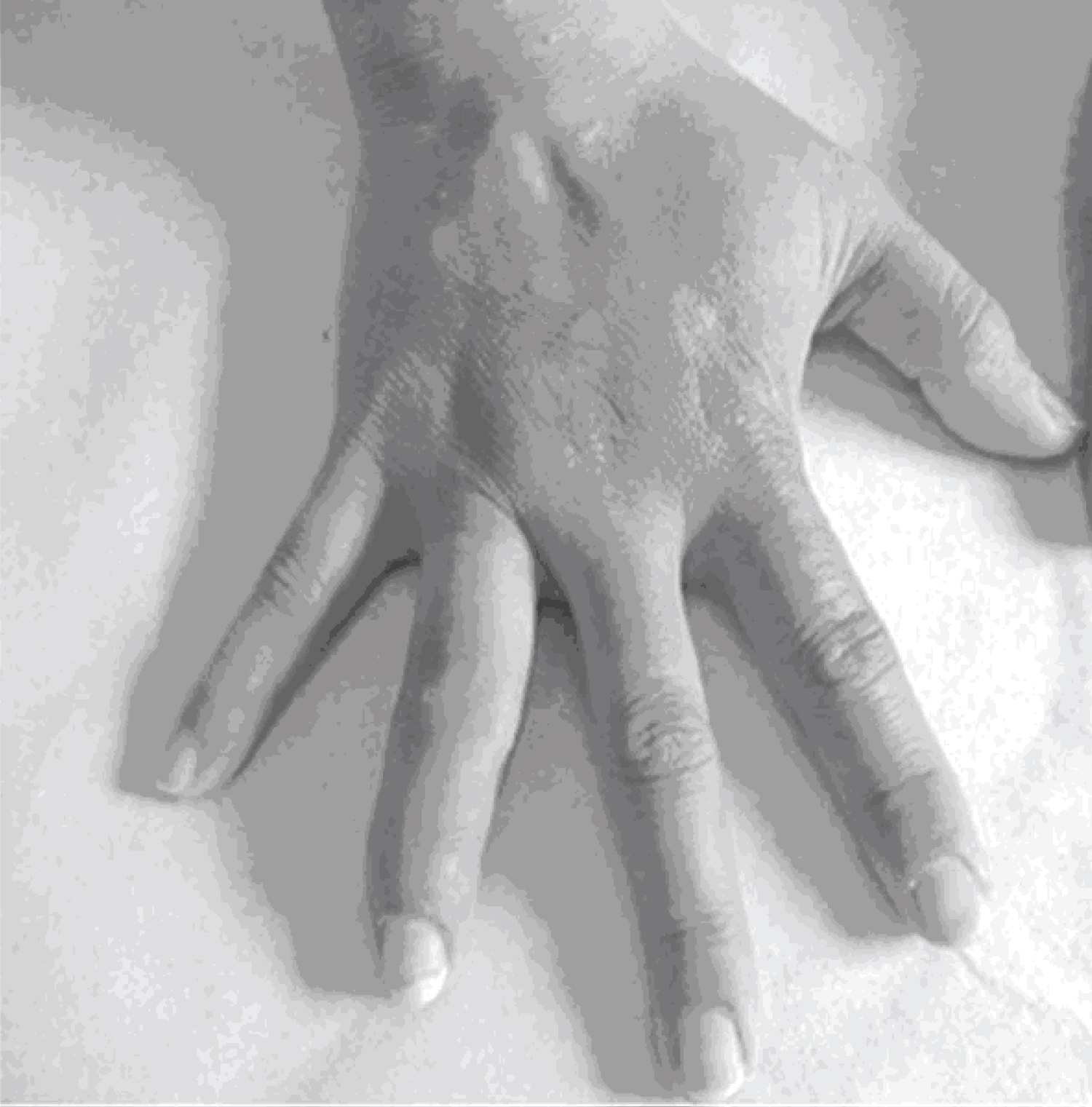 Figure 2: Dactylitis of the ring finger of a patient with psoriatic arthritis.