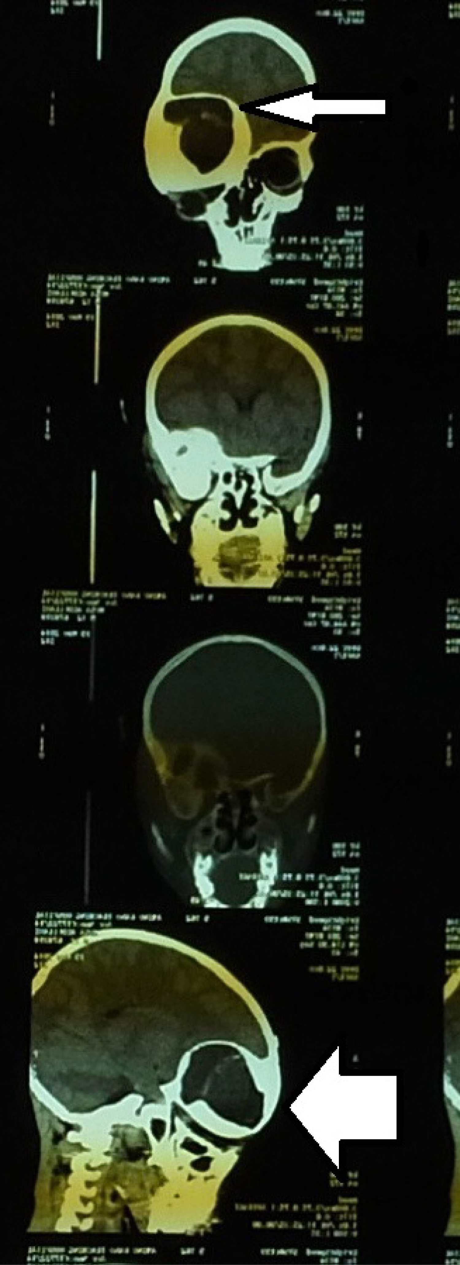 Figure 1: Clinical photograph a patient with left fronto-orbital mass.