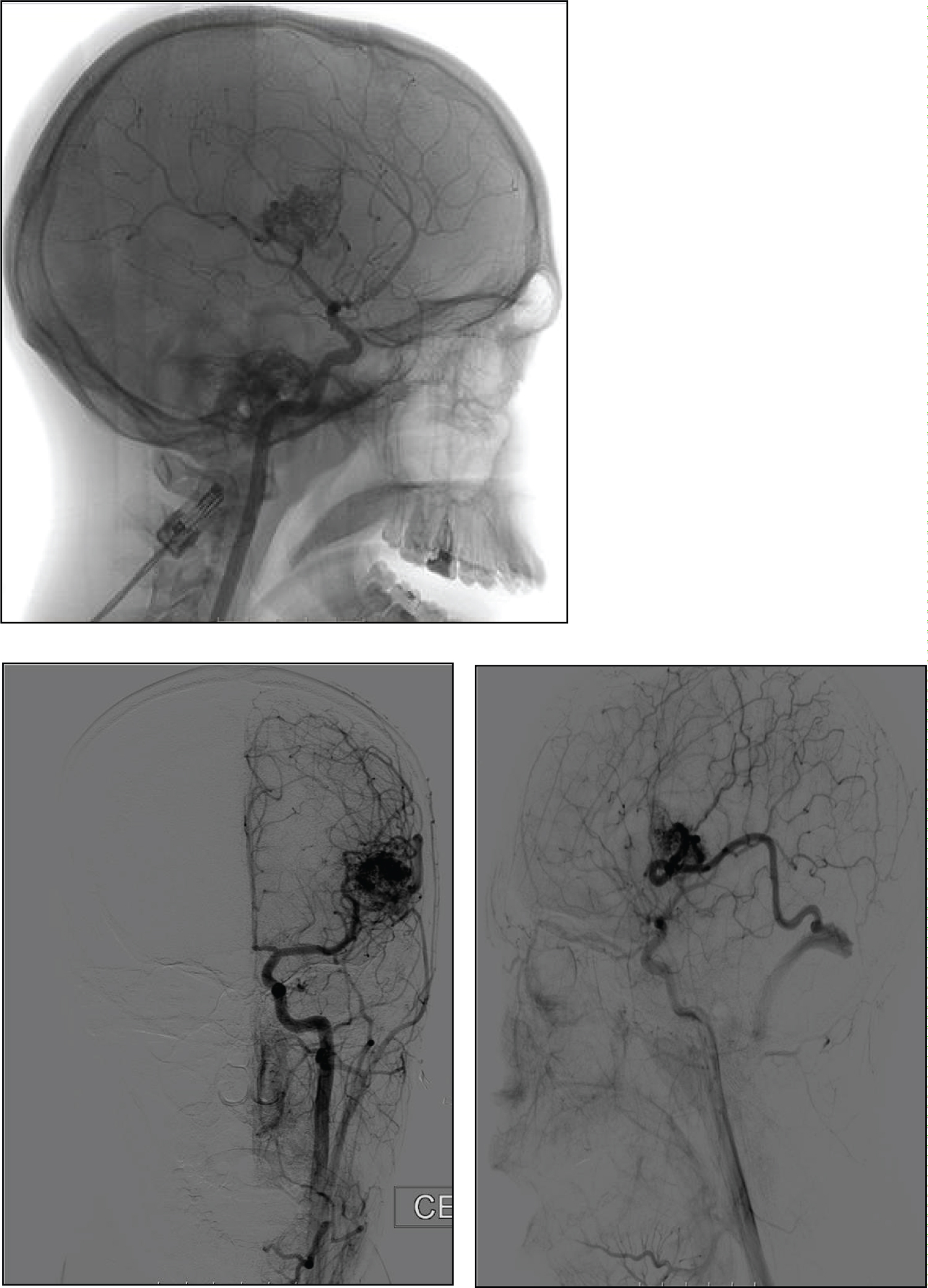 Its diagnosis usually involves imaging techniques including CT, MRI and angiography. CT has low sensitivity for detecting brain AVMs, but it is important in the face of suspicion of ruptured AVM to evaluate the hematoma. However, cerebral angiography remains to be the gold standard for the diagnosis of vascular malformations [3]. It is also important in posttreatment follow-up [11].