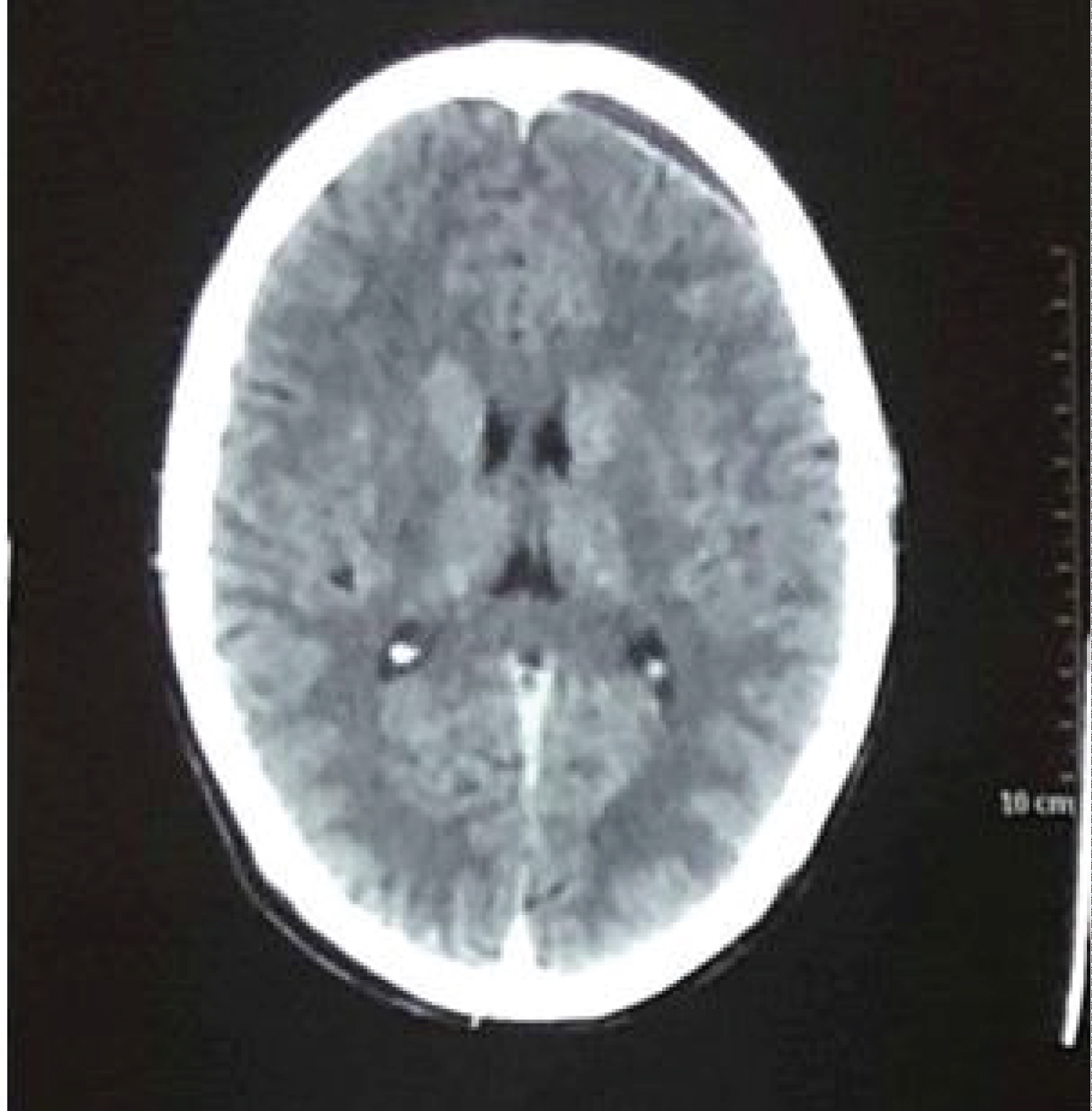 An eighteen-year-old male sustained trauma due to a hit by a wooden rod. He was having continuous diffuse headache and vomited twice on day one only. There was no history of loss of consciousness or seizures. Patient consulted some doctor after injury who advised CT scan head which showed left fronto parietal acute EDH (Figure 1).