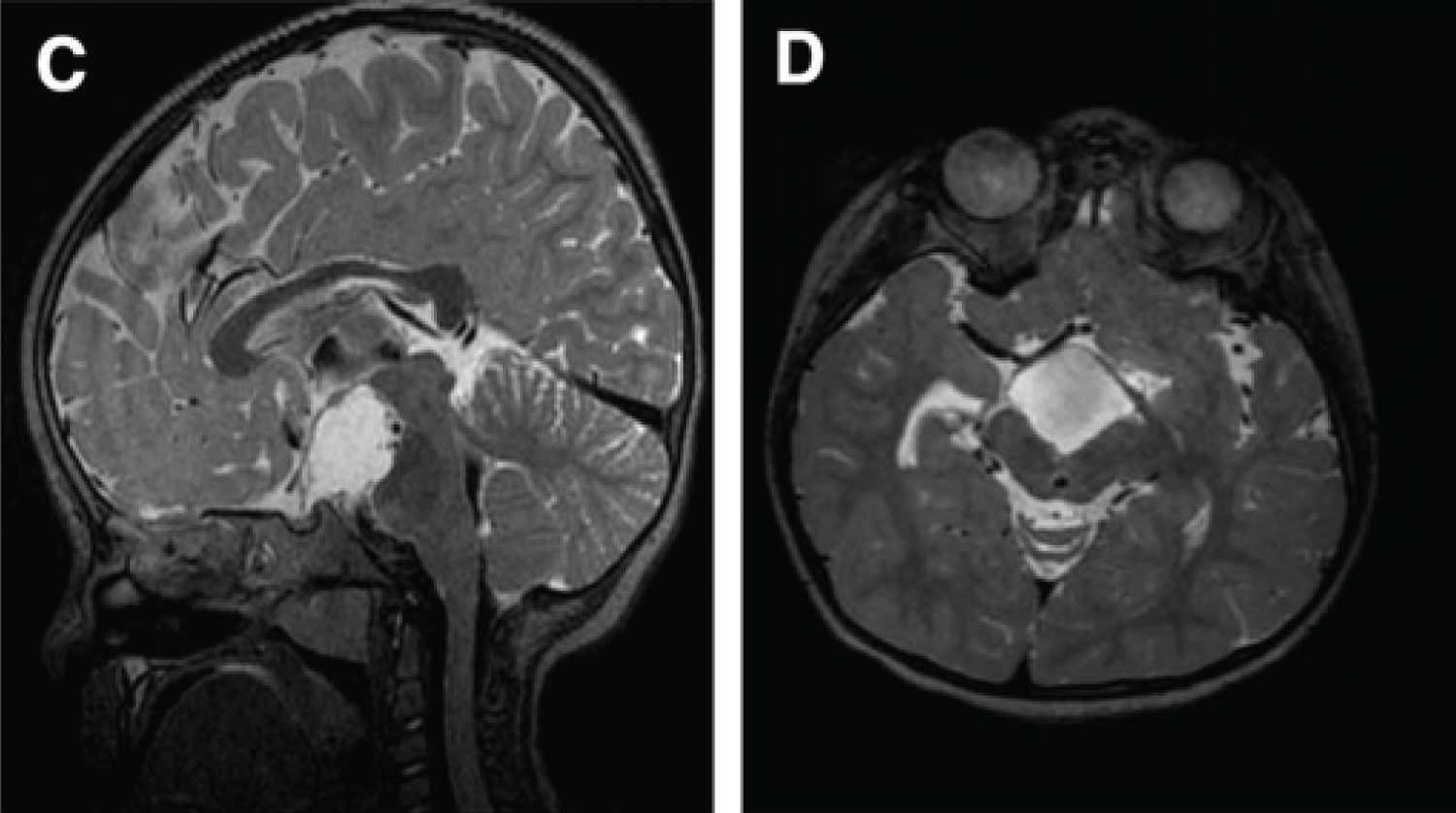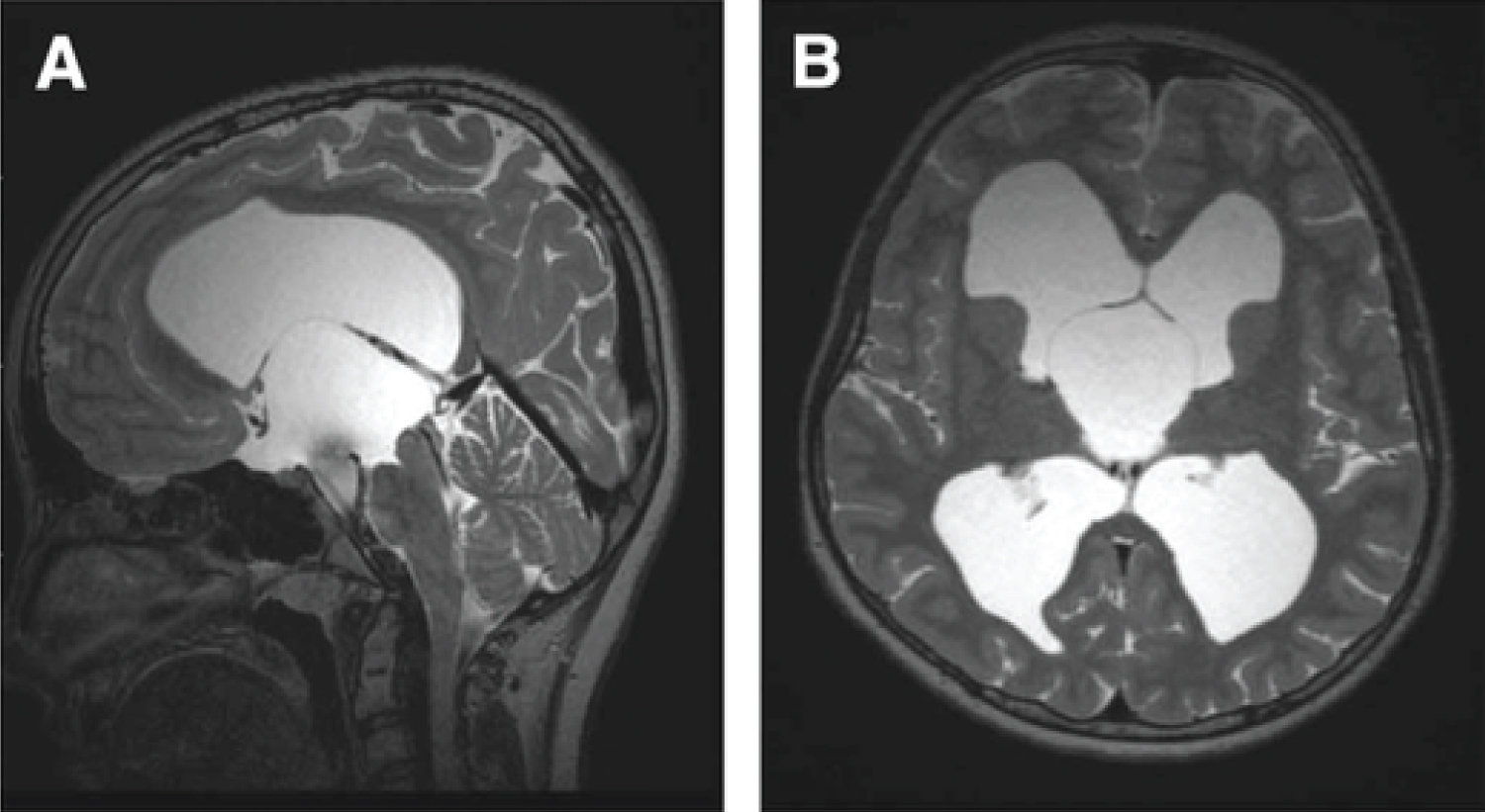 The clinical characteristics range from hydrocephalus, macrocrania, developmental delay, ophthalmologic/oculomotor disturbances, endocrine perturbations of epilepsy [1].