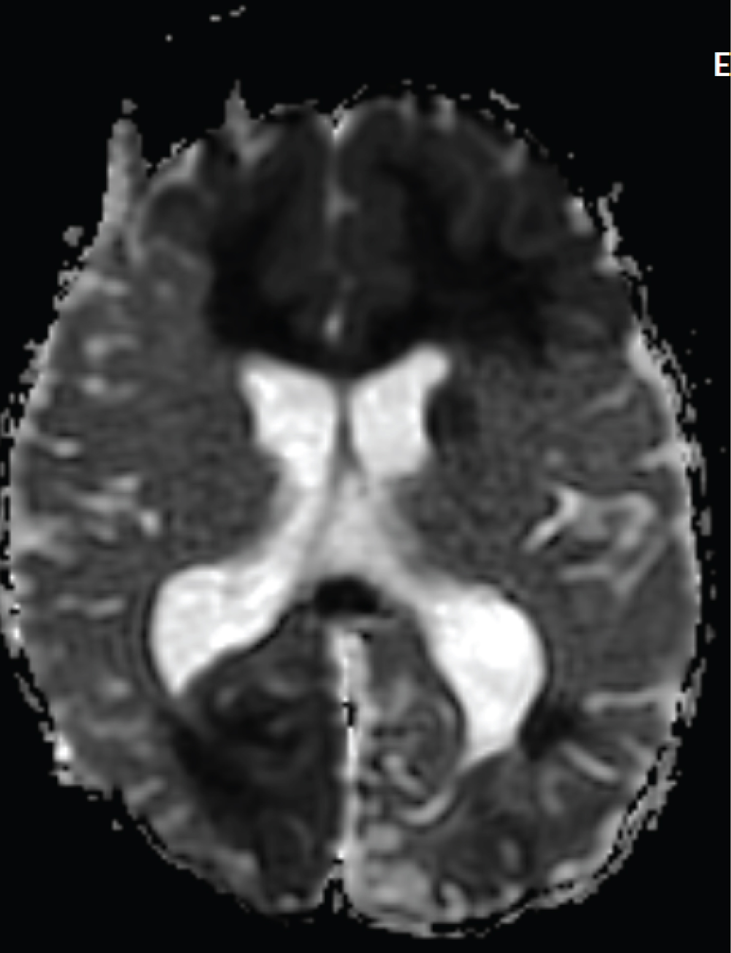 Figure 3: ADC image shows signal changes in the frontal and occipital lobes.