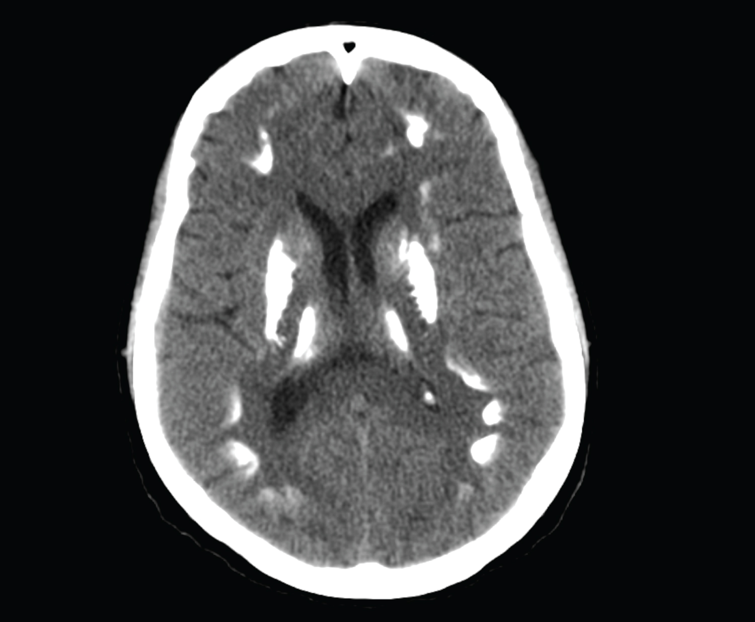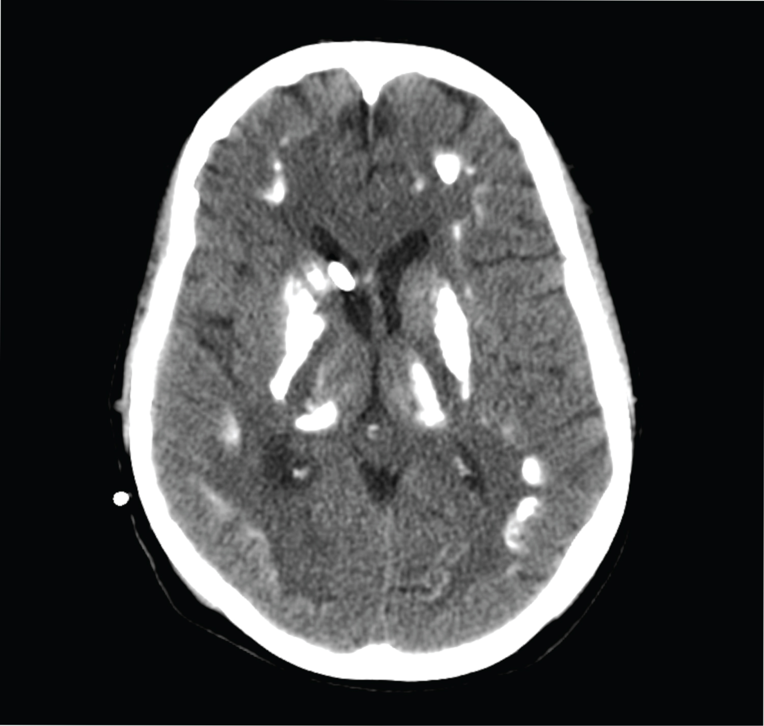 Figure 6: Control brain tomography taken before discharge after removal of the external ventricular drainage catheter.