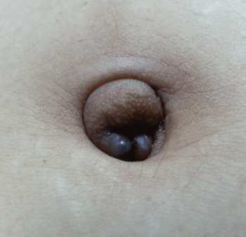 She presented with scanty painless bleeding from the umbilicus for past 5 months which coincided with her menses. The bleed would start a few days before her menses and ceased by day two, in small amount and painless. Her cycles were regular with normal flow and no dysmenorrhea. She also noted blackish discoloration of the umbilicus. There was no other abnormal bleeding.