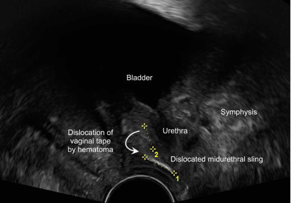 Once a retropubic tension-free vaginal tape has been dislocated by an adjacent hematoma, it may not return to its original location even after complete resorption. If the stress urinary incontinence persists, the placement of a new retropubic tension-free vaginal tape should be considered. The success rate of a second mid-urethral sling procedure is more than 70% [15,16].