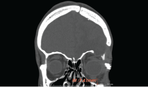 Postoperative CT images showed the resolution of the dystopia and the follow up controls demonstrated good health of the soft tissues and the absence of diplopia. An improvement of the facial symmetry was furthermore noticeable (Figure 9, Figure 10).