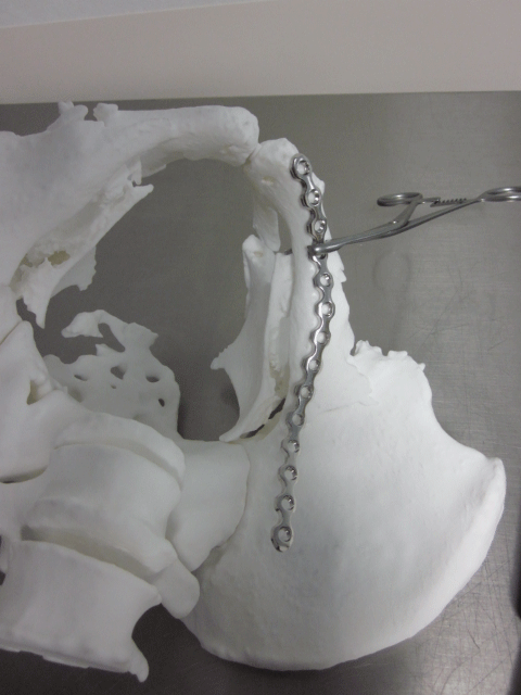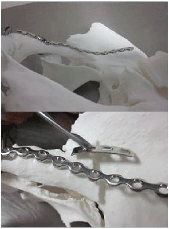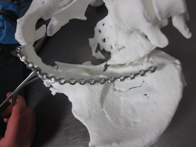 Figure 3: Preoperative simulation using the 3D printed model and pre contouring plates.