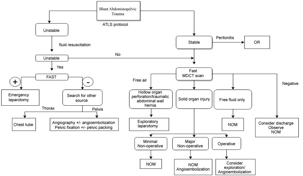 Figure 4: Diagnostic and therapeutic algorithm for patients with blunt abdominopelvic trauma. View Figure 4