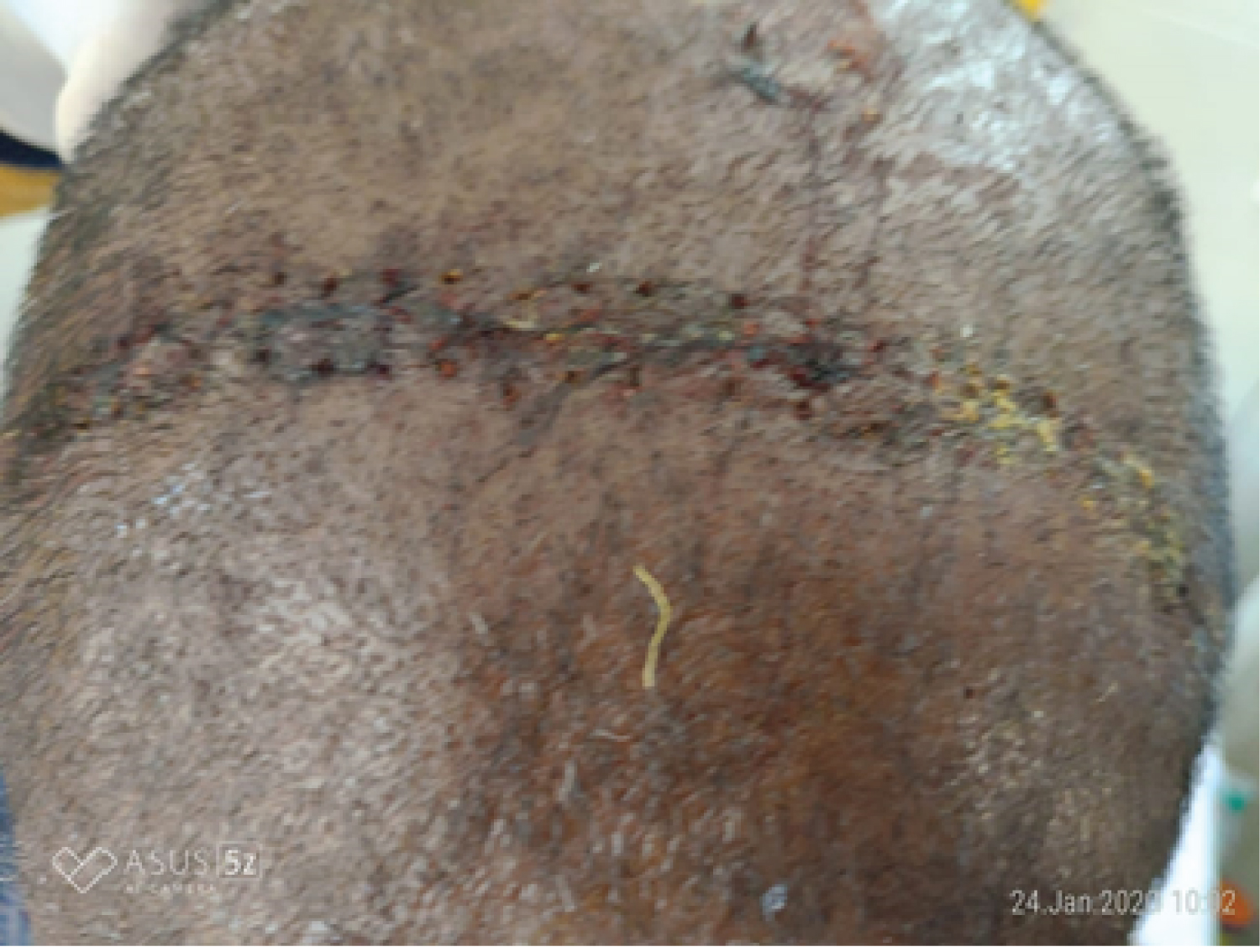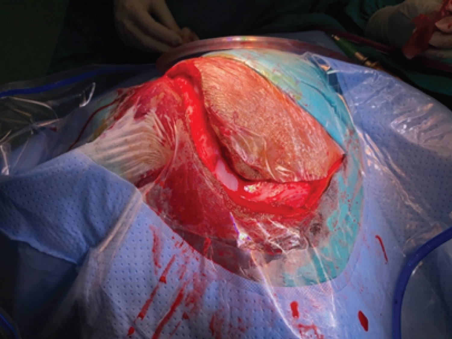 Figure 3: Skin incision with stainless steel surgical blade.